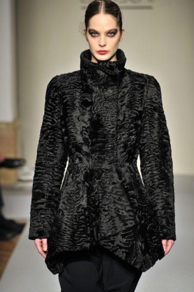 Несмотря на доступную стоимость, каракуль используется для пошива не только традиционных моделей, но и для романтичных шубок необычного кроя.
