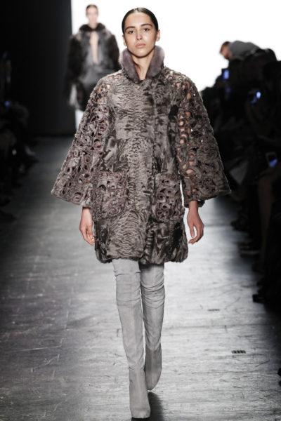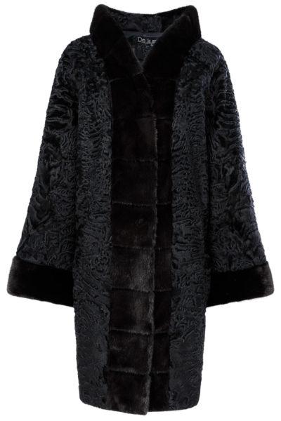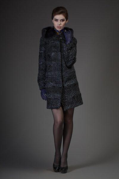Особого внимания заслуживает уникальный прием комбинирования каракуля с гладкими или стрижеными мехами. Такие шубки, словно конструктор, собираются «блоками». Другим видом меха декорируют капюшон, рукава или зону кокетки.