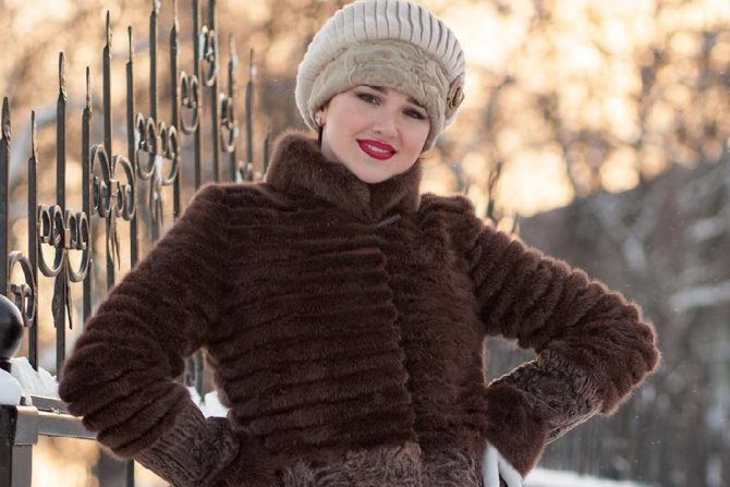 Коричневые цвета успокаивают, говорят о надежности, доверии. В отличие от шубы из черного меха, коричневые более «мягкие», выглядят менее строже. Пастельные тона придадут коричневому цвету нежность, изящество. Отлично смотрится с коричневым терракотовый цвет, все жёлтые оттенки. И ещё, затейники-дизайнеры очень любят сочетать не только цвета, но и разные фактуры меха. А как хорошо с коричневой (да и не только) шубкой смотрится шляпка-шлем «клош»! Примерьте также шляпки из фетра, трикотажа.