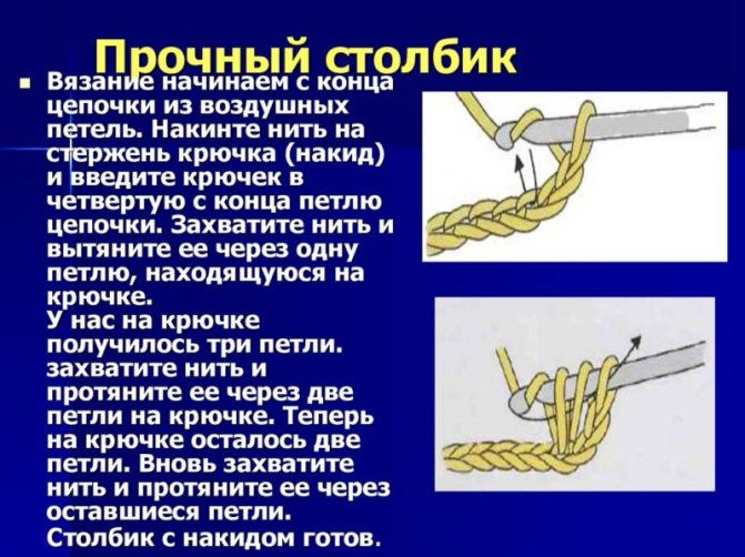 Начинающие вязальщицы могут использовать обычную вязку столбиками с накидом. Деталь, выполненная в такой технике, будет хорошо держать форму.