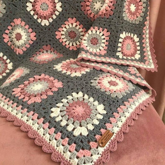 Для работы крючком наиболее подходит схема «Бабушкин квадрат». Более опытные мастерицы могут попробовать «Испанский квадрат» или баварский узор. Схемы вязания можно найти в интернете, где их великое множество.
