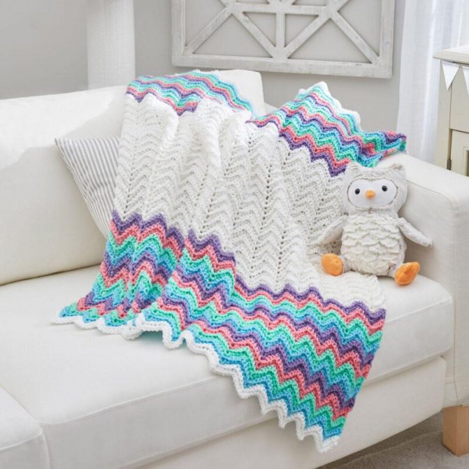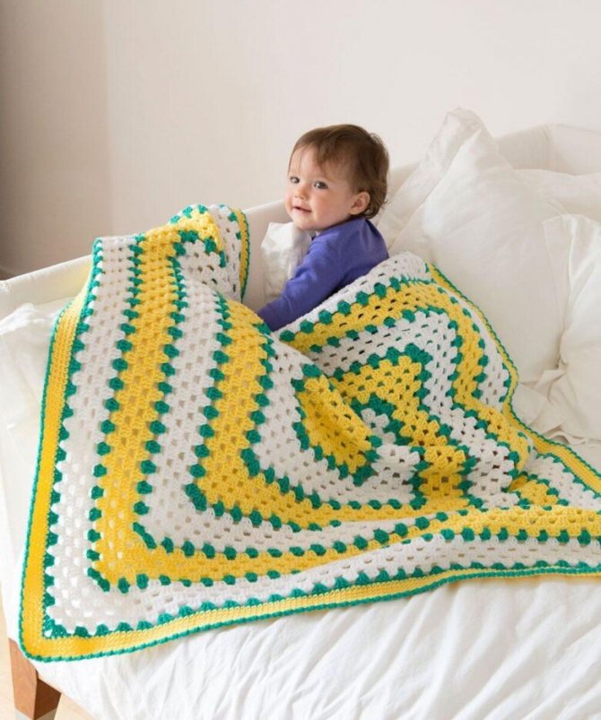 Детский плед связанный собственноручно будет отличным вариантом для подарка на день рождения малыша.