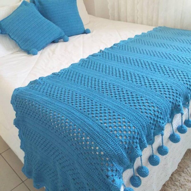 Связать покрывало самостоятельно можно при помощи спиц, крючка либо просто руками. Каждая техника имеет достаточное разнообразие способов, применяя которые получаются уникальные изделия. К примеру, баварская вязка крючком. «Вафельный» рельеф покрывала смотрится привлекательно.