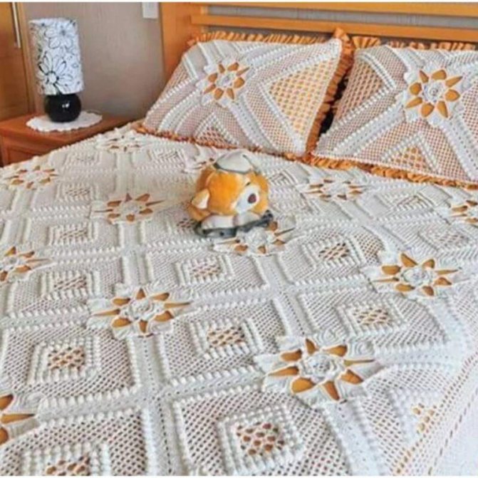 С помощью крючка можно создать огромное количество разнообразных орнаментов. Процесс вязания покрывала крючком занимает много времени, поэтому нужно запастись терпением.