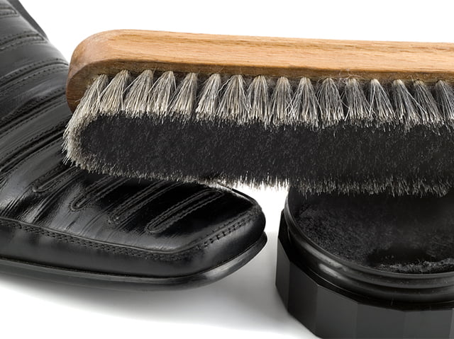 Наносят мазь для чистки обуви 2–3 раза в неделю. Рекомендуется мазать тонким слоем и оставлять на ночь впитываться. Затем утром очищать с помощью щётки. А для придания блеска натирать куском бархата. При такой чистке на коже некогда не образуются трещины.