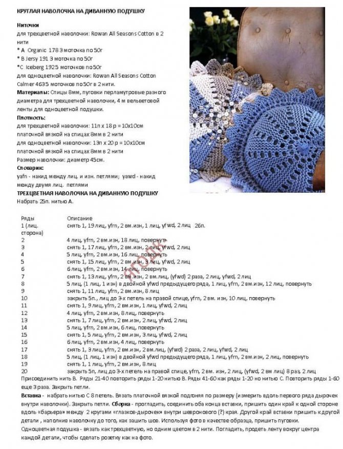 - Изнан. р.: петельки вяжутся согласно рисунка