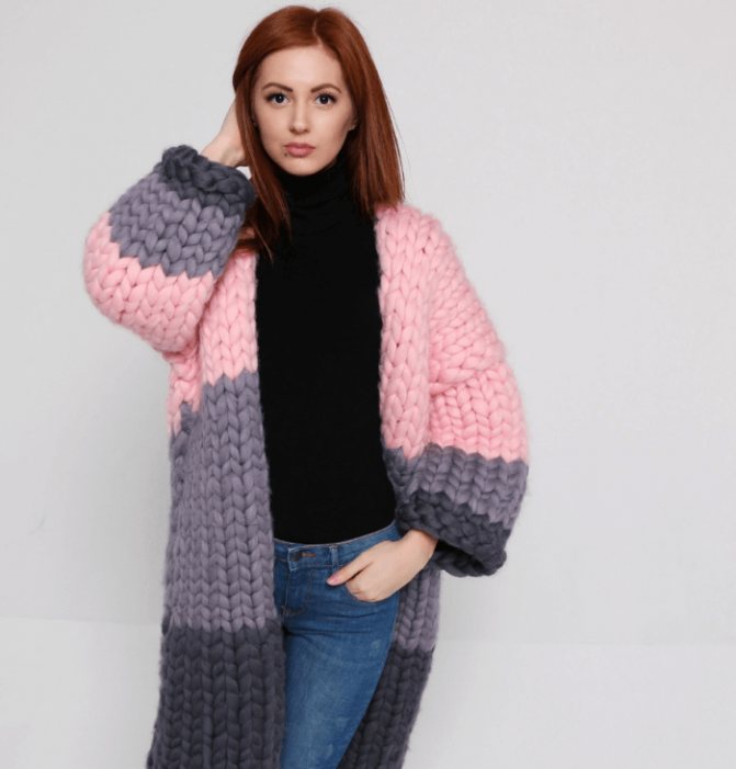 На заметку! Модели из толстой пряжи также могут быть выполнены в стиле оверсайз.